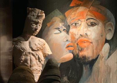 Stefanie Theberath - Skulpturen + Rob Jansen - Bilder, lassen mit Ihren Arbeiten Menschen unterschiedlicher Art aufeinandertreffen.